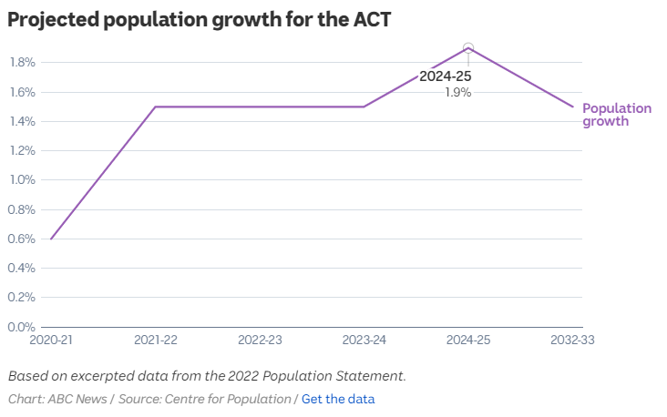 作为一个人口相对年轻的城市,预计出生率高于死亡率将有助于未来几年的人口增长,首都领地的人口将从现在的46万左右攀升至2032-33年的55万。