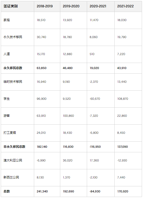 疫情期间移民出现了自二战以来第一次的移民净流出的现象(即出境人数高于入境人数),这主要是因为澳大利亚联邦政府收紧了出入境政策。