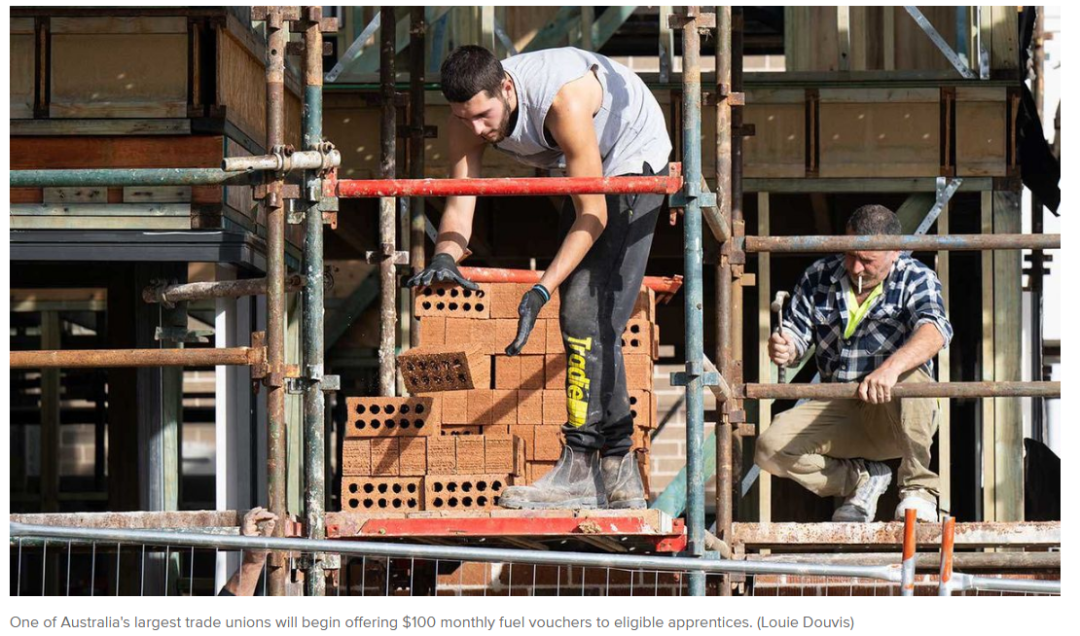 CFMEU向学徒会员提供每月$100燃油券,助其应对油价上涨压力!
