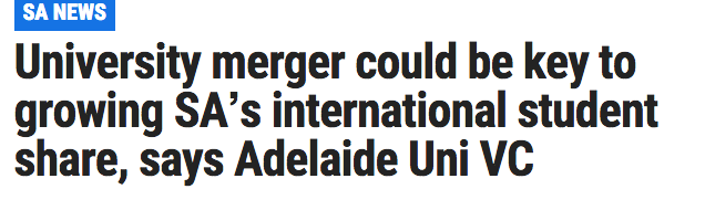 阿德莱德大学和南澳大学的合并商讨事宜正在如火如荼的开展着, 近日,两所大学的大佬们又提出了一个观点:大学合并将是吸引国际留学生的关键。 在泰晤士世界大学排名中,阿德莱德大学目前排名第134位, ...