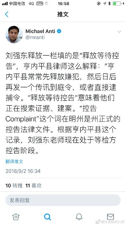 今日,网上曝出奶茶妹妹章泽天的丈夫刘强东因在美性侵大学生被捕,随后,有网友在国外社交媒体网站推特透漏了刘强东被捕细节:刘强东释放一栏填的是:释放等待控告,正处于等待检方控告的阶段。 &nb ...