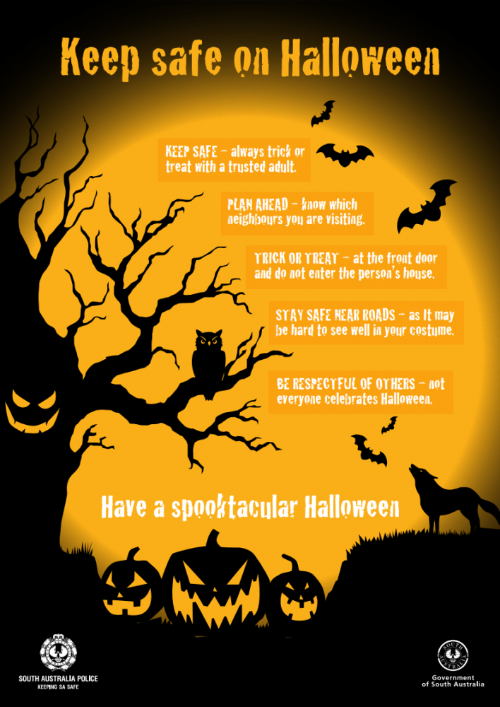大家万圣节平安快乐! 万圣节大概是小孩子们最喜欢的节日之一了! 因为不仅可以扮成自己喜欢的样子,什么吸血鬼啊、女巫吖、鬼魂啊......还可以去别人家要糖吃! 海报的全尺寸大图可以在南澳警方网站下载:[s ...