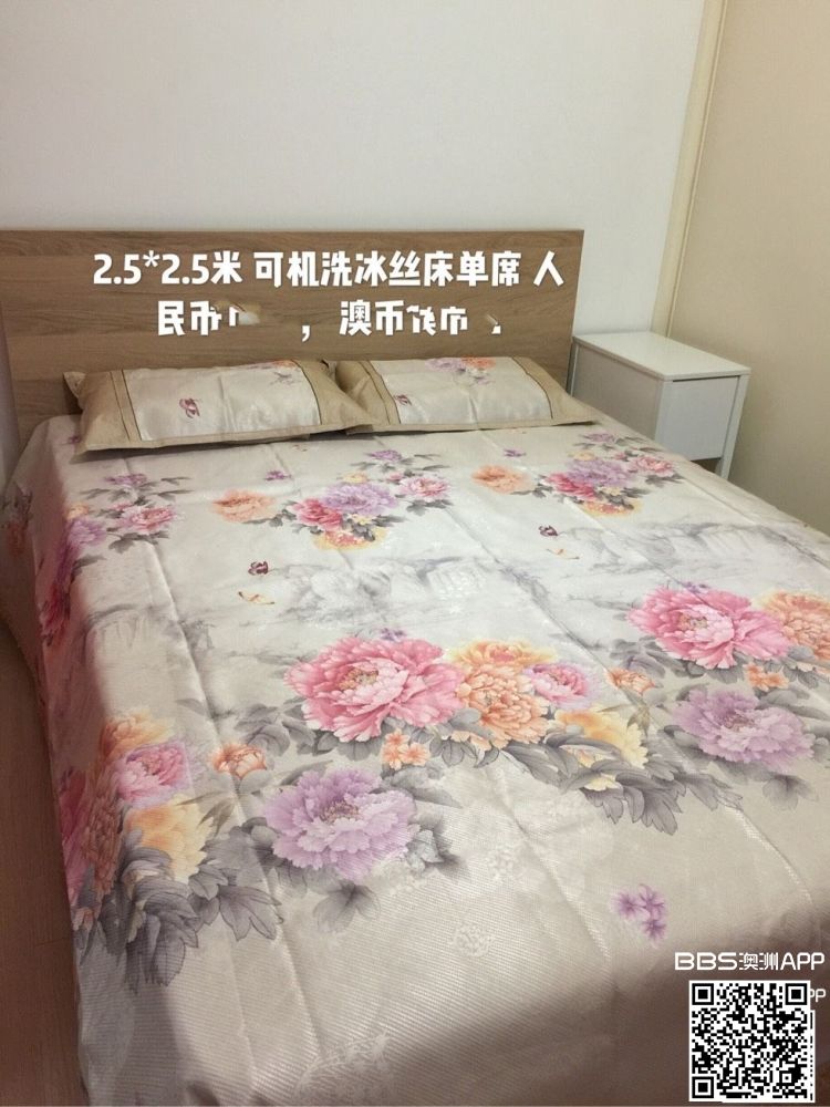多出一套上等全新可机洗冰丝床单席,国内背来,全新。带了三套,多出一套,夏天睡真的非常舒服,凉爽,而且清洗异常方便容易。现折价出售,人民币600元,澳币120刀。可加微信,备注:冰丝席。先到先得。谢谢