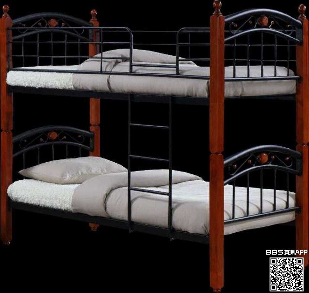铁木双层单人床,新买包装没拆, 只要半价$200 块. 有决心卖, 请电:0425222861 谢谢!