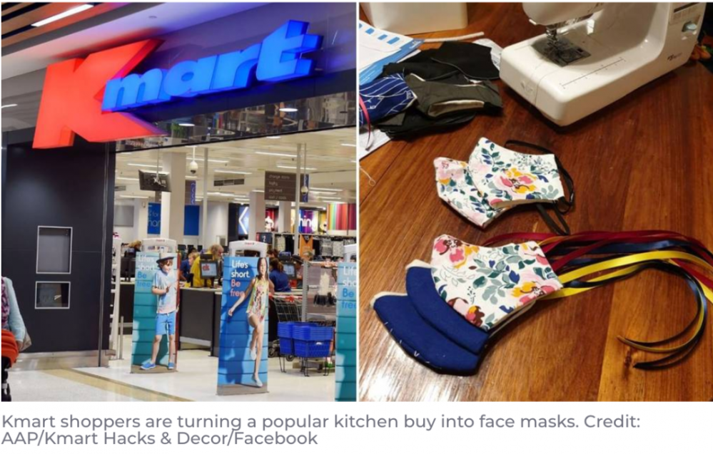 据7 news报道,Kmart的购物者分享了他们将茶巾做成口罩的经验。 这种售价1.5澳元的厨房用品被消费者抢购一空,其中一位消费者称它们“非常适合用来做口罩”。 购物者已经开始自己制作口罩,以应对澳大利亚新冠病 ...