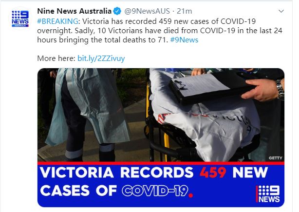 维州在过去24小时新增459例确诊,10例死亡。 10例死亡病例中,有七男三女,其中一名男性四十多岁。死者中有七例与养老院有关。 目前维州总死亡病例数增至71例。 这14例病例分别是:六例与Thai Rock餐厅有 ...