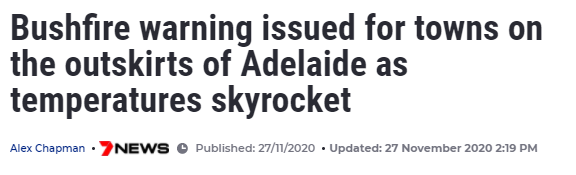 消防部门The Country Fire Servie(CFS)今天下午向Roseworthy、Sandy Creek、Freeling和Lyndoch的居民发出紧急警告信息,称火势“可能会直接对沿途居民构成生命威胁”。 如果路途安全,建议居民离开,如果不安 ...