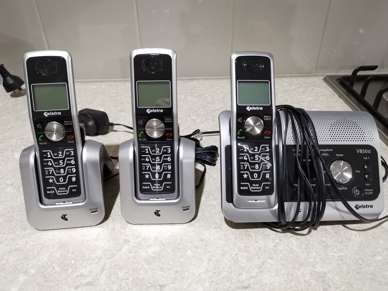 Telstra 无线电话,一个母机加两个子机。$10出。联系电话,0415621364