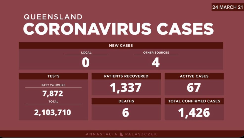 在过去的24小时内,昆州新增4例海外输入病例。 目前昆州有67个活跃病例,已进行了2103710次病毒检测。 联邦卫生部长Greg Hunt表示,澳大利亚的COVID-19疫苗推广项目正在“显著加速”,首批 ...