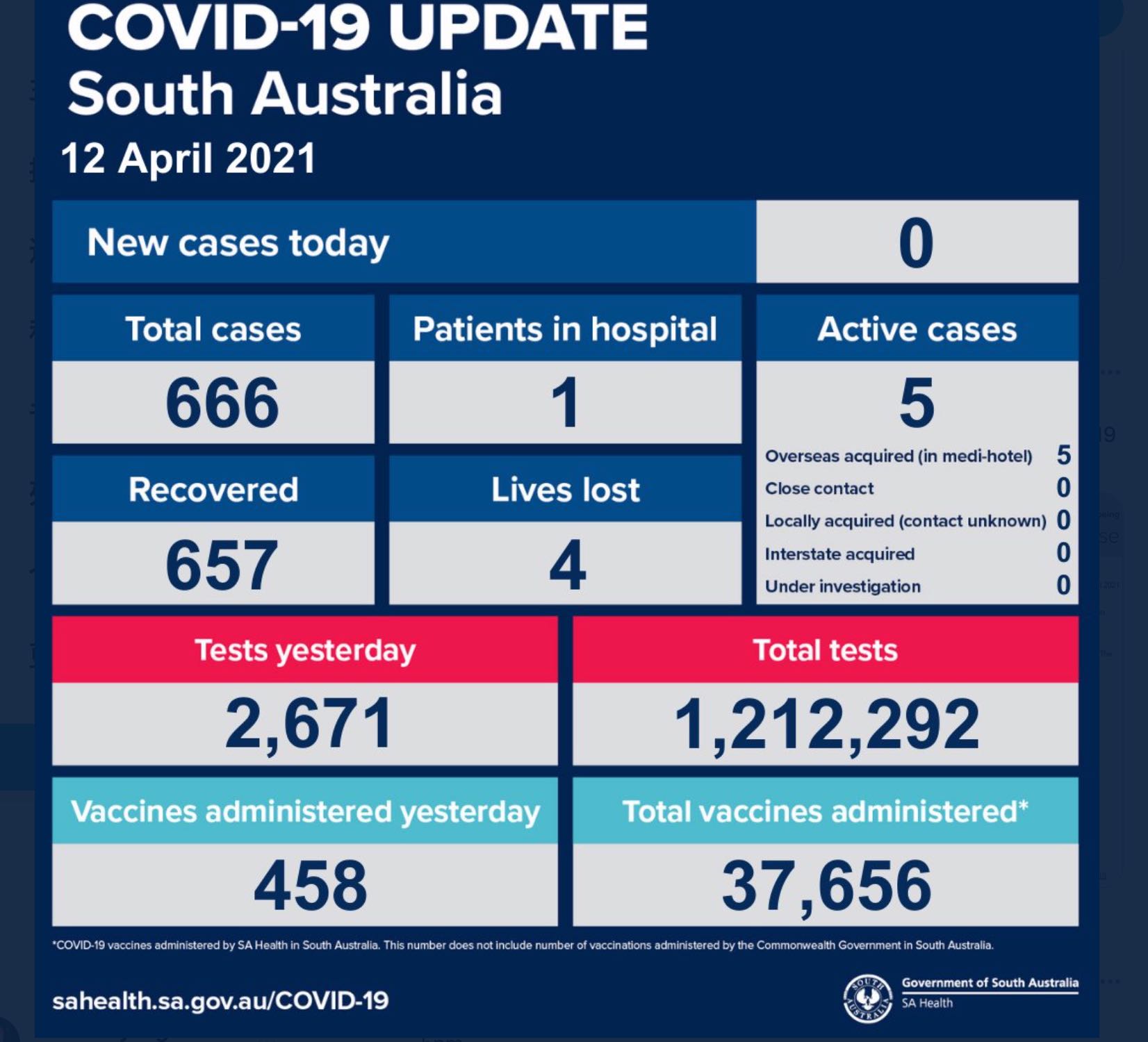 据南澳大利亚州卫生局报道,今日南澳大利亚州新冠病例零新增。一名40岁因新冠引起的呼吸困难的男子仍然处于危急状态,自上周以来一直在皇家阿德莱德医院(Royal Adelaide Hospital)ICU中接受治疗。 图文来源:AB ...