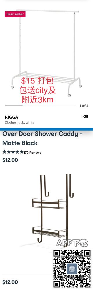 另有 浴巾架+脏衣篮 +晾衣架 打包$10 ,可以送到city
