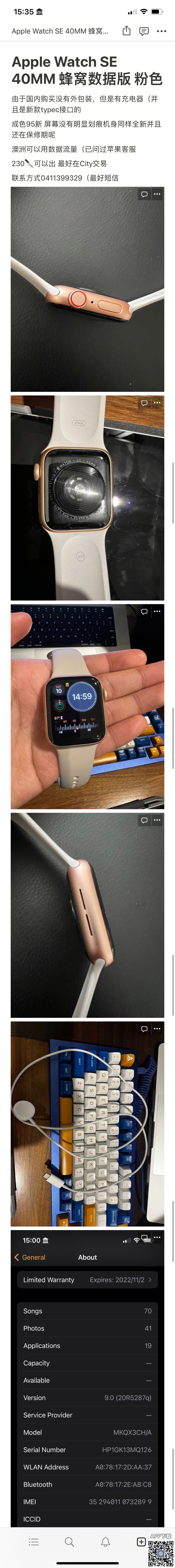Apple Watch SE 40MM 蜂窝数据版 粉色