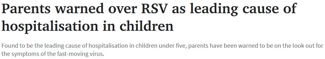 一份重要报告敦促家长了解RSV症状,该报告预测2023年可能有超过12000名婴儿因RSV病毒住院。 RSV最初的症状包括流鼻涕、咳嗽、打喷嚏、喘息、食欲不振、嗜睡和易怒,然而后期它会恶化为支气管炎或肺炎。 ...