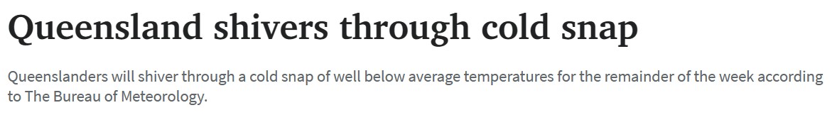 随着寒流进入昆州南部,昆州部分地区气温已降至零下4℃。 周三,塔斯马尼亚州、维多利亚州、澳大利亚首都地区和新南威尔士州部分地区温度预计将达到破纪录的低点。 随着周四冬至的临近,冷锋将穿过昆 ...
