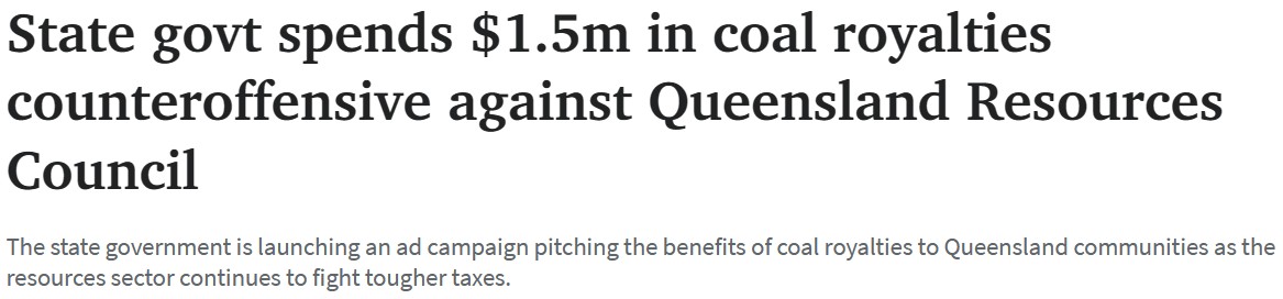 煤炭特许权使用费广告,以说服昆州地区居民相信,通过对采矿业征收更严厉的税收所获得的财富是值得的。 Dick先生在2022年的州预算中引入了一个新的煤炭特许权使用费等级,以利用创纪录的高价格,此举引 ...
