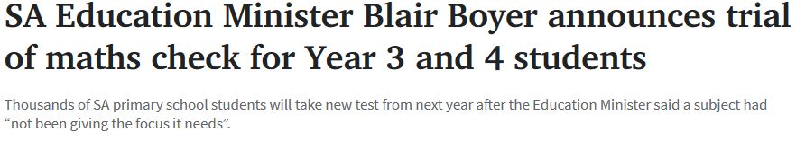 南澳公立学校的三、四年级学生将从明年开始参加一项新的数学技能测试。 Grange Primary School的一群学生最近体验了新的测试。该校校长Stephen Jolley表示,这可以为教师提供更多有关 " ...