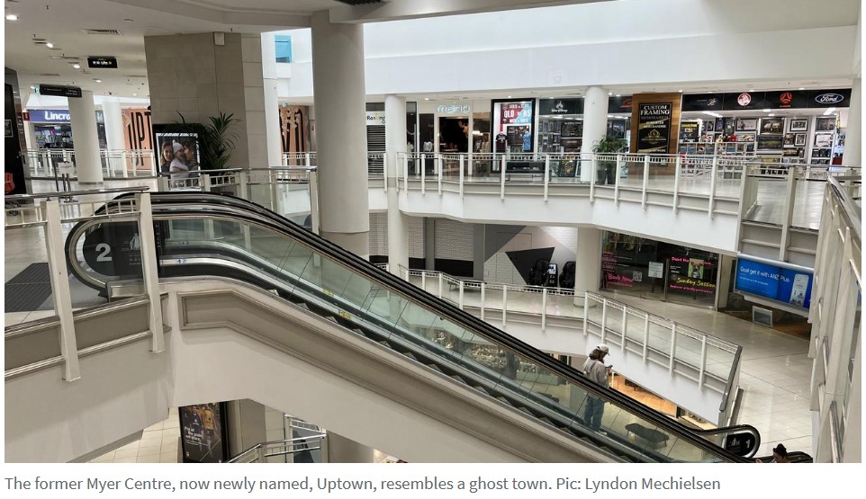 Myer在布里斯班的旗舰店关门一周后,原来的"Myer Centre"已不见踪影,这个标志性的购物场所现在就像一座鬼城。 Queen Street Mall挂满了色彩鲜艳的横幅,自豪地展示着该中心新的"Uptown&q ...