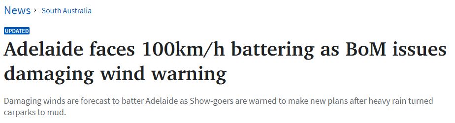 气象局表示,周五阿德将刮起时速高达100公里的破坏性大风,预计从早上开始强降雨将有所缓解。 周四下午,从South Terrace入口的Park 21w停车场因泥泞不堪而关闭,Park 22的停车容量也减缩。 Park 23 停车 ...