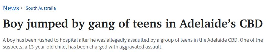 据称,一名男孩在阿德CBD遭到一群青少年的袭击,随后被紧急送往医院。其中一名13岁的嫌疑人已被指控犯有严重伤害罪。 警方对该地区进行了搜查,发现了其中一名嫌疑人,一名13岁的Smithfield男孩。 他被指 ...