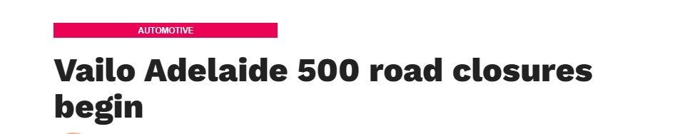 阿德明天开始封路,Vailo Adelaide 500大赛即将开始! 随着阿德准备迎接下周11月23日激动人心的Vailo Adelaide 500大赛,明天(11月17日星期五)将开始实施重大道路封闭措施,建议驾车者谨慎规划进城路线。 ...