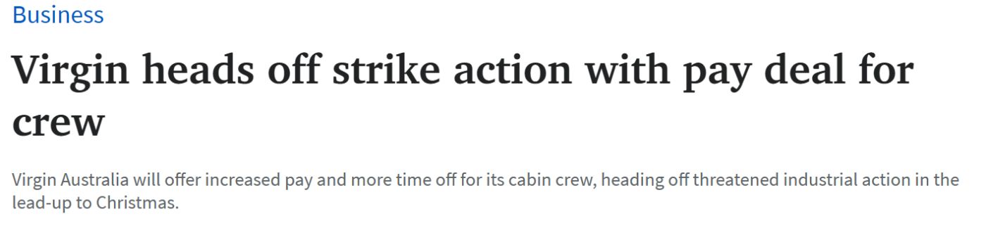 据悉,维珍澳大利亚公司将为机舱乘务员提供更高的薪酬和更多的休息时间,从而避免了圣诞节前可能发生的罢工行动。 维珍航空老板Jayne Hrdlicka早些时候警告说,机舱乘务员威胁采取罢工行动可能会损害航空公 ...