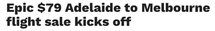 据悉,维珍航空推出最新优惠航班,促销的旅行日期涵盖7月至9月、10月至12月以及2025年1月至明年4月。 阿德莱德至墨尔本 $85 经济舱,单程 2024年7月8日至2024年9月11日之间旅行 促销截止日期: ...