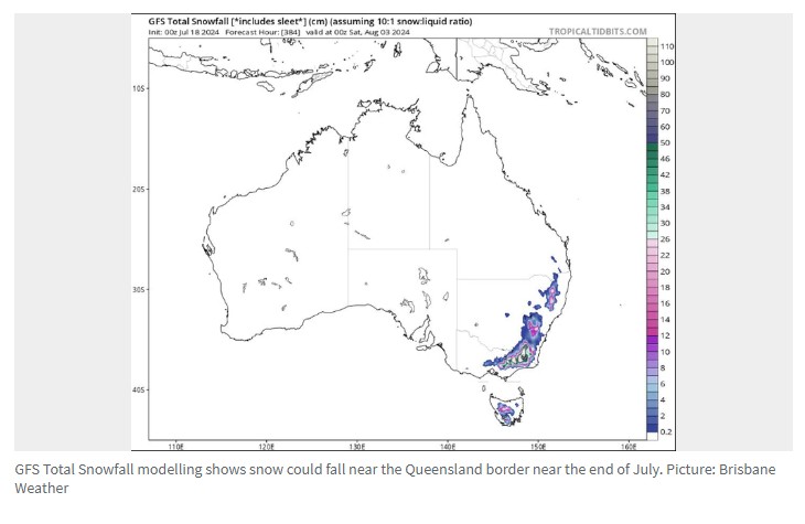 本周,昆州多年来首次降雪,天气预报员预测降雪量可能会更多,最北可达Kingaroy。 Facebook气象小组布里斯班天气分析模型显示,7月31日将降雪,影响Granite Belt和Darling Downs,并可能影响Burnett地区。 ...