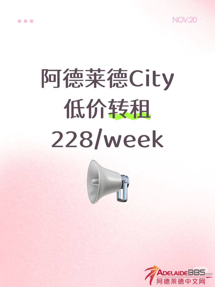 阿德莱德City内 低价转租 228/week 包家具 不包bill 有意者短信联系:0466883252