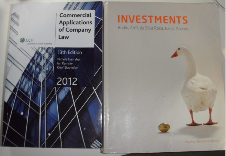 corporate Law handbook 是2012版的,卖40刀 Portfolio textbook 书面有一只鸭子,老版新版差别不大,卖35刀 两本书都比较新 联系电话:0433532127 QQ:294854598 有兴趣的同学能留意一下,谢谢