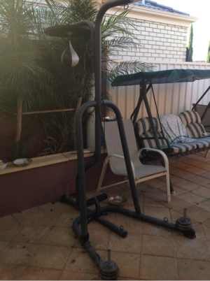 出售拳击架和秋千椅 如图 拳击架买的时候700多,配有三种不同的沙袋和手套 现80刀转,自取 秋千椅 50刀 自取 请勿议价 电话0401010561