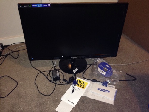 Samsung Series 3  27寸 HD 1920x1080   显示器外观和使用没有任何问题。因为买了新的显示器所以把这个卖掉。 楼主2013年8月26号在Rundle Mall的Dick Smith买的全新。只用了一年多一点, ...