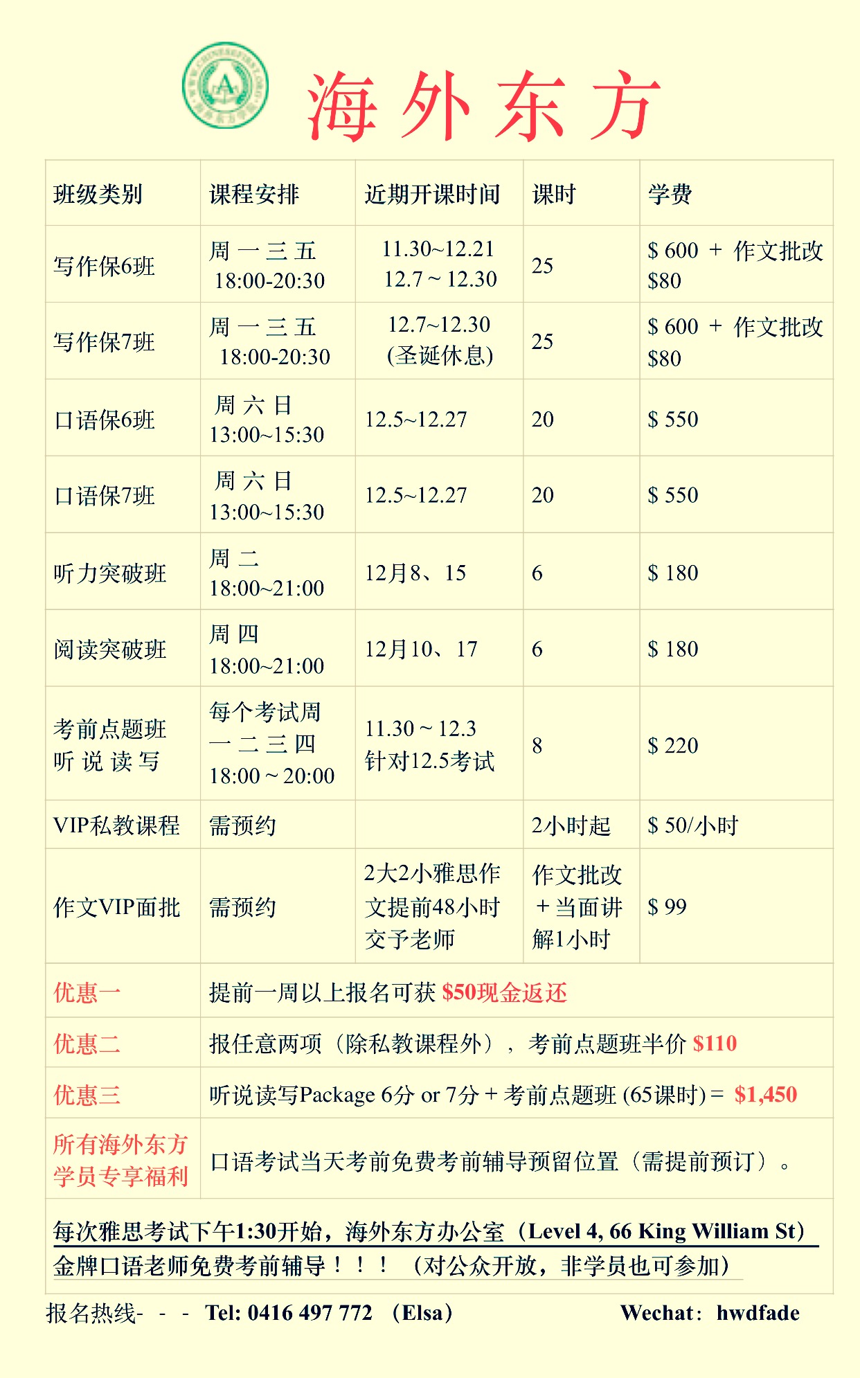 又一度毕业季,移民形势严峻,气氛萧肃,final过后,一场与雅思的大战即将来临,你是不是还在单打独斗,是不是还在盲目摸索,海外东方屠鸭战队登陆阿德莱德,各路大神齐聚于此,带领考鸭们潜心修炼绝技,助你一举屠 ...