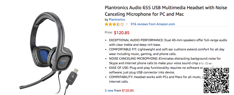 PTE耳机 Plantronics655,amazon.au原价120.85刀,PTE考场一模一样的耳机;