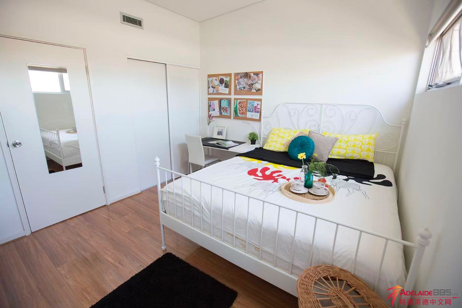 现在出租的这间房间面积很大 全家具内有一张双人床,一整面墙的衣柜,一个写字台~