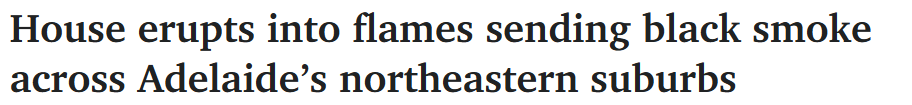 据2月20日报道,阿德东北部发生大规模房屋火灾,浓烟滚滚升腾,笼罩了郊区上空。 当地居民Sam表示,她走到屋前,看到街对面的屋顶"烈焰滚滚"。 她说:"我们看到住在那里的女士安全地在屋外,于是赶 ...